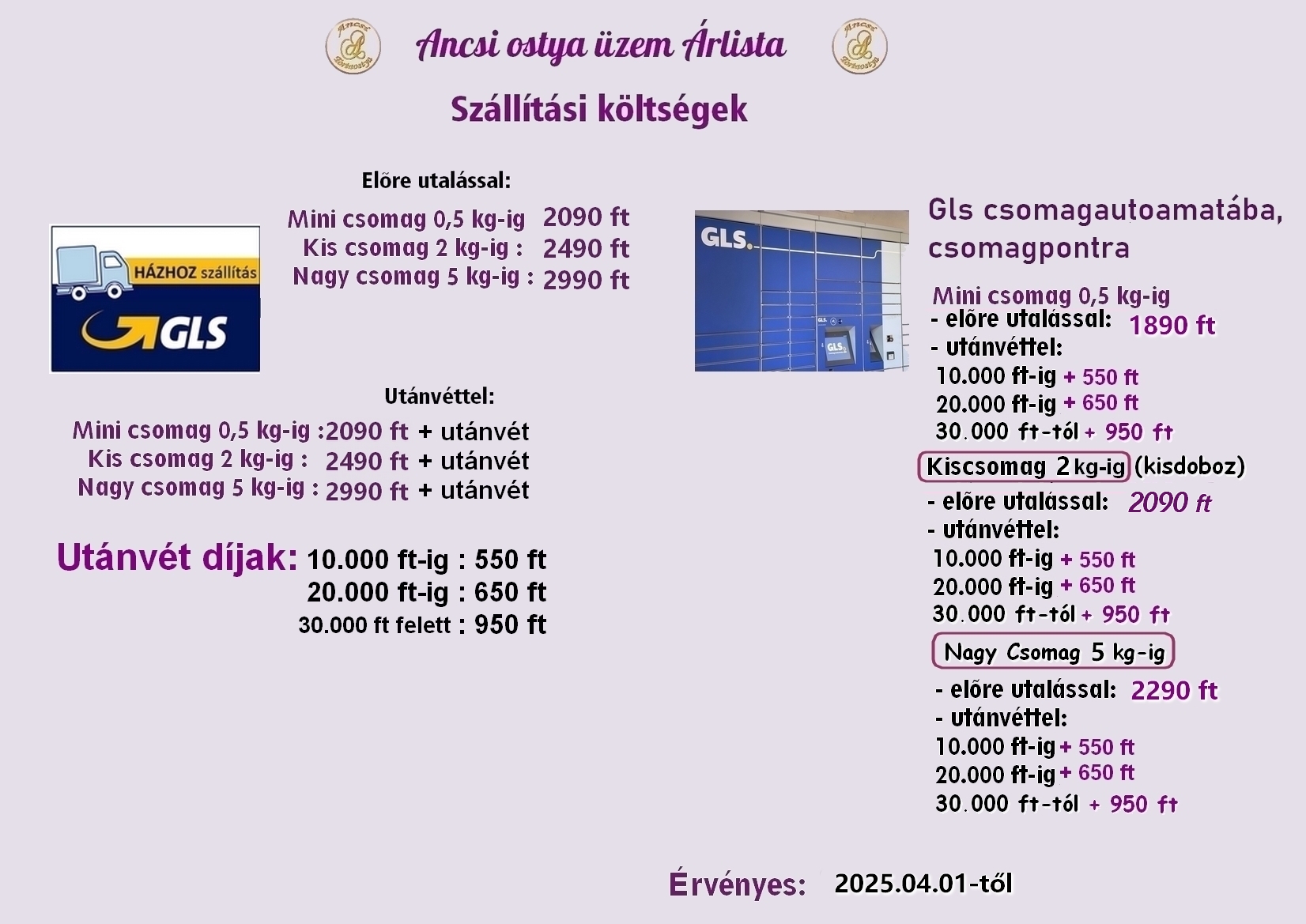 Ostya áraink nagyker áraink. 2025.06.01-től